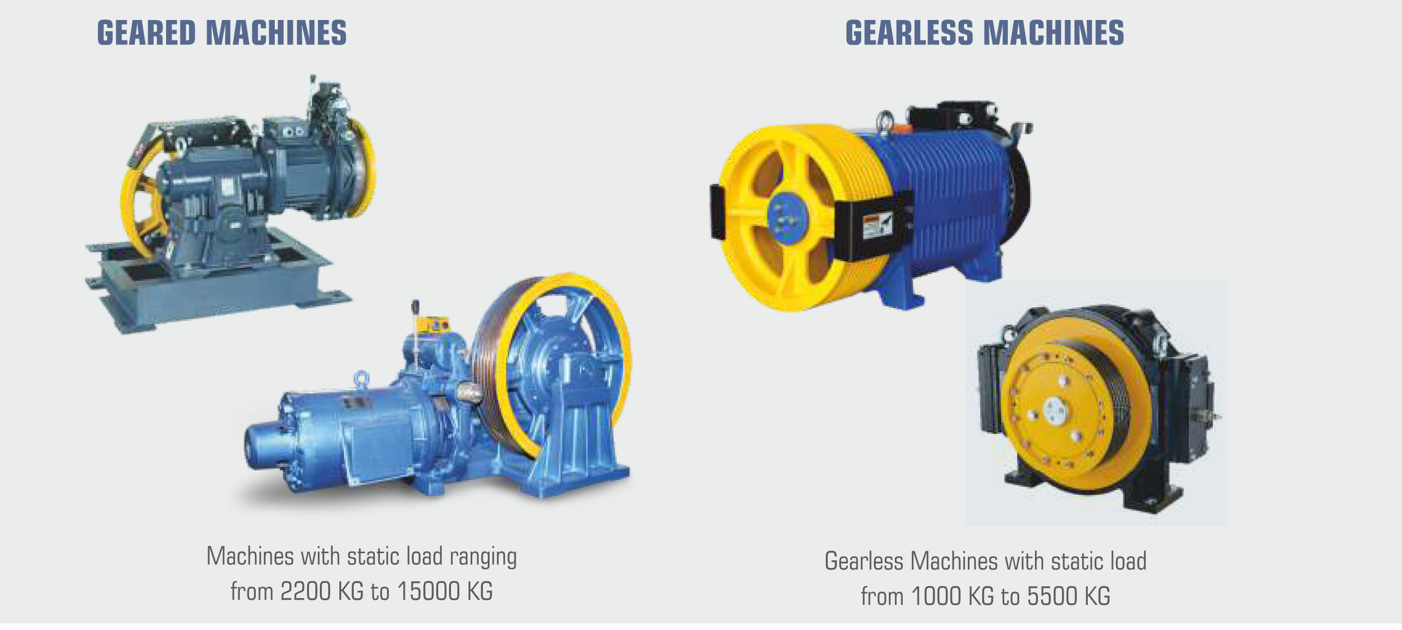 We use the machines which are manufactured by well known brands in the elevator world such as Montanari (Italy), Sicor (Italy) and Bharat Bijlee (India).